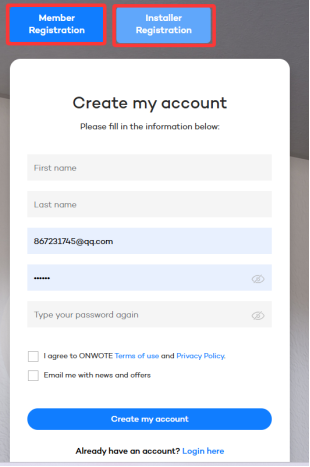 2. We offer two types of accounts (Member Registration / Installer Registration), and you can choose to register based on your own situation.