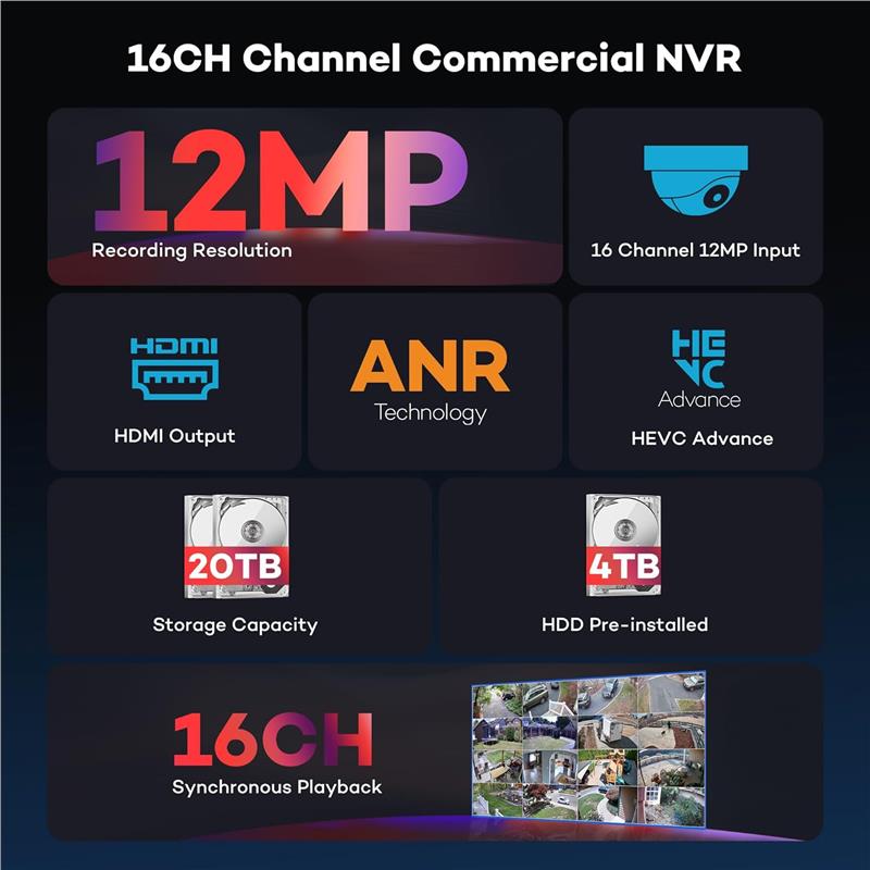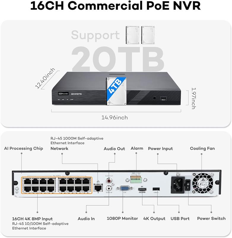 4TB hard drive is pre-installed in the nvr for free local storage.
