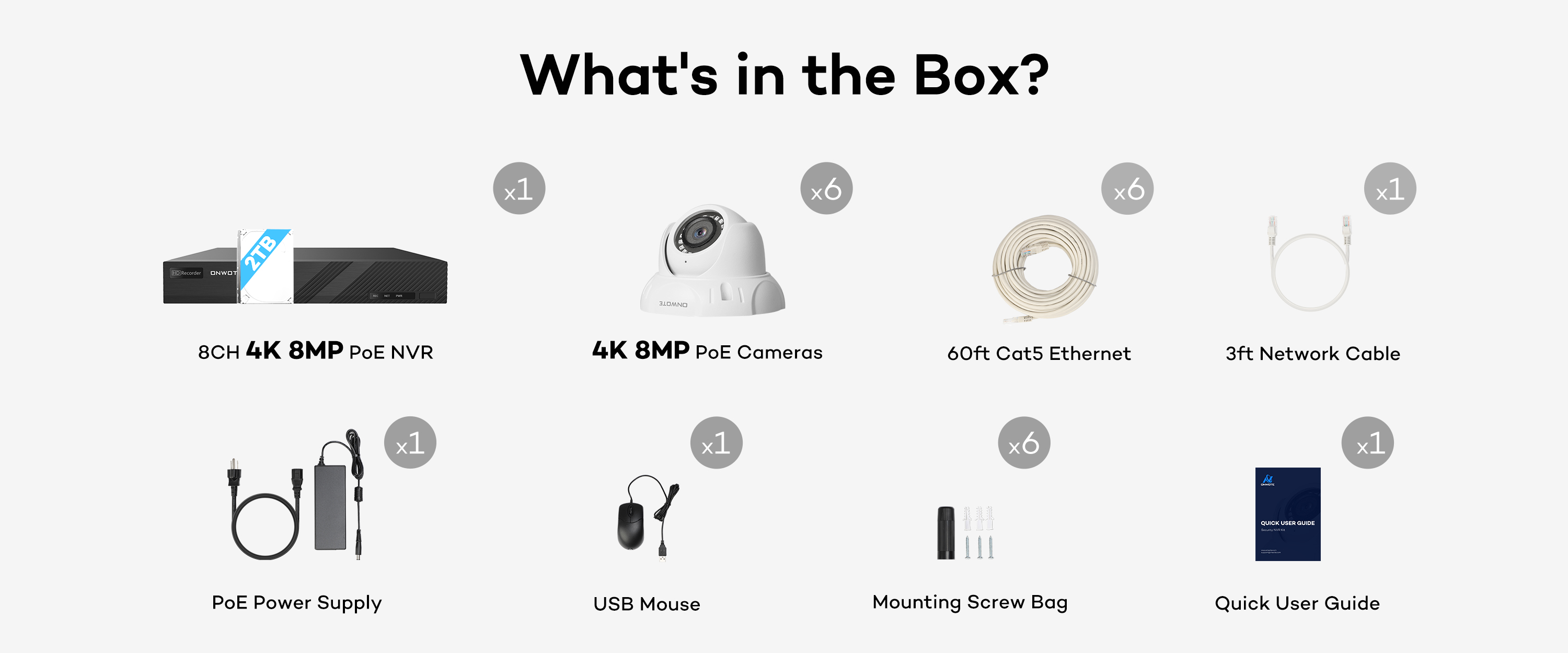 ONWOTE 8 Channel PoE Security Camera System, 6x 8MP POE IP Cameras, 8CH 8MP NVR 2TB, 10TB Storage Capacity, Commercial Grade CCTV for Home Business
