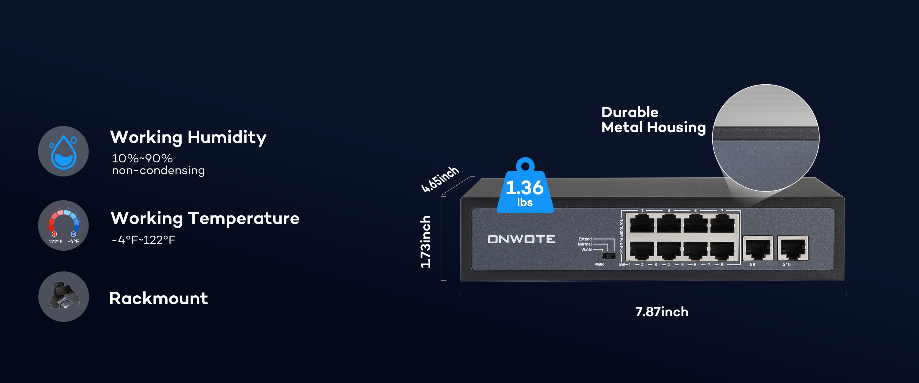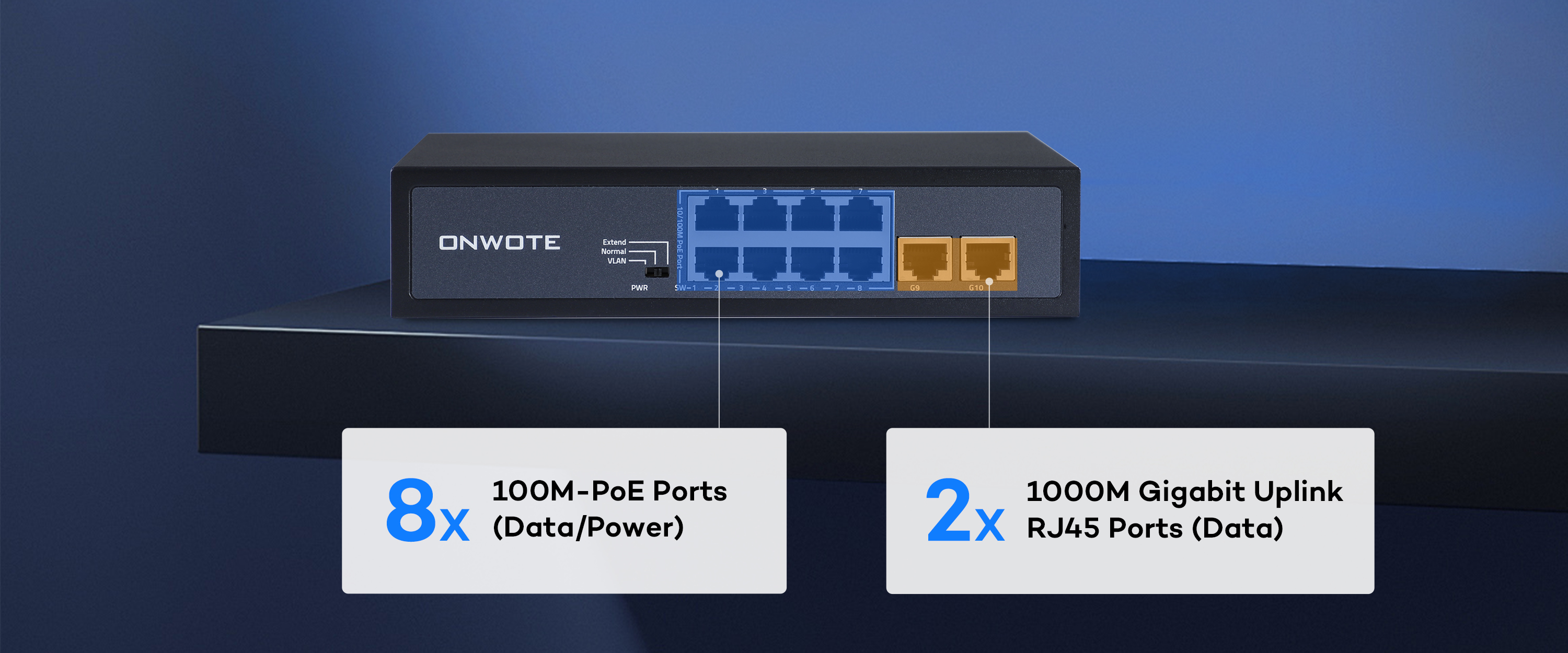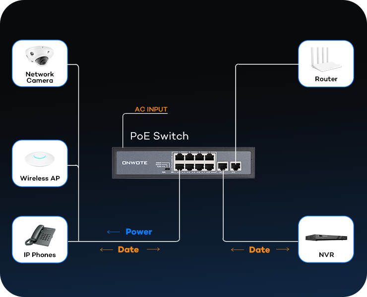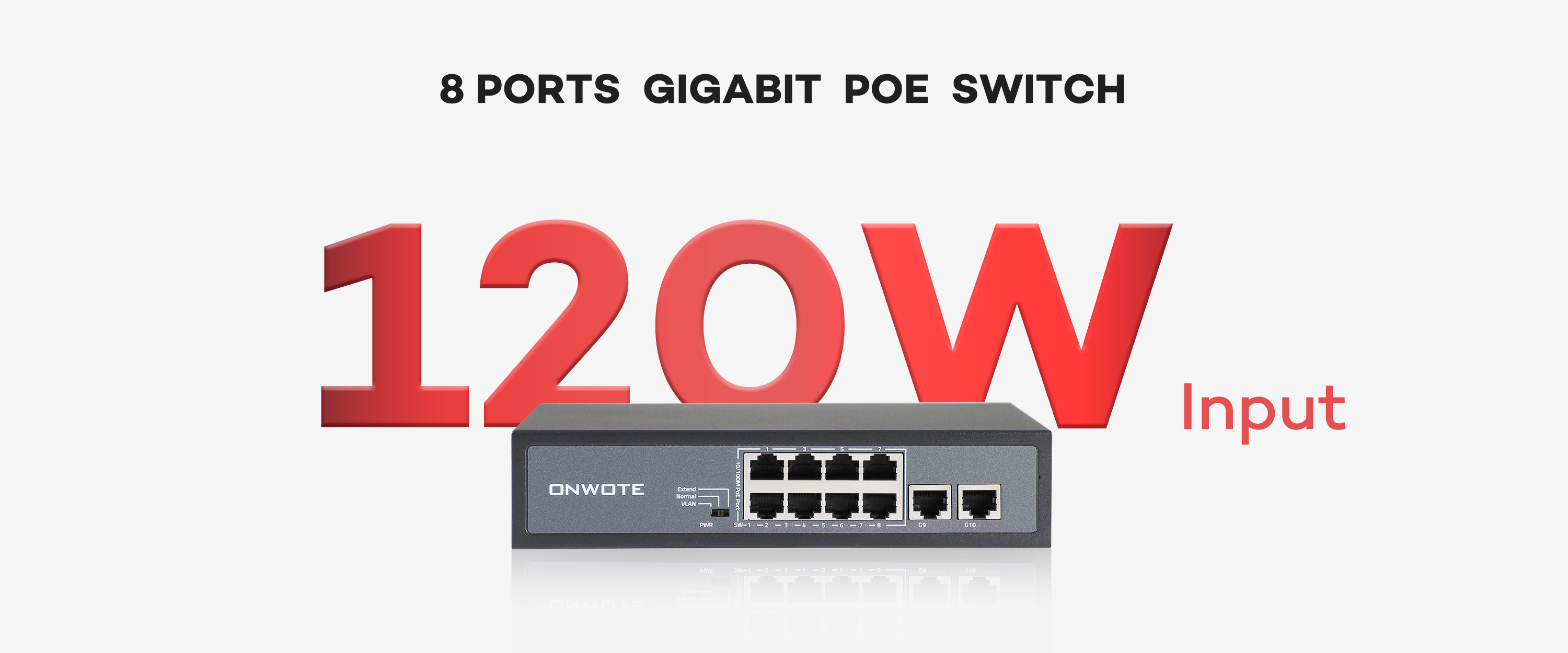 ONWOTE 8 Ports 120W(AC100-240V) Ethernet PoE Switch, 2 x Uplink Gigabit RJ45 Ports, Support 4K 8MP 5MP PoE IP Security Cameras, Add-on PoE Injector to PoE NVR System