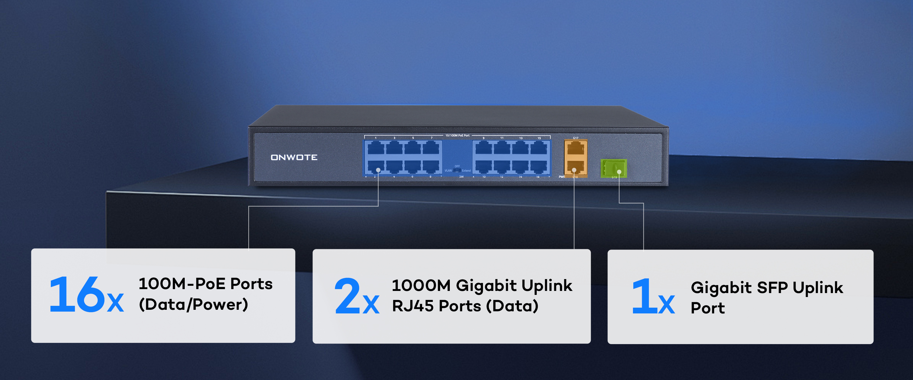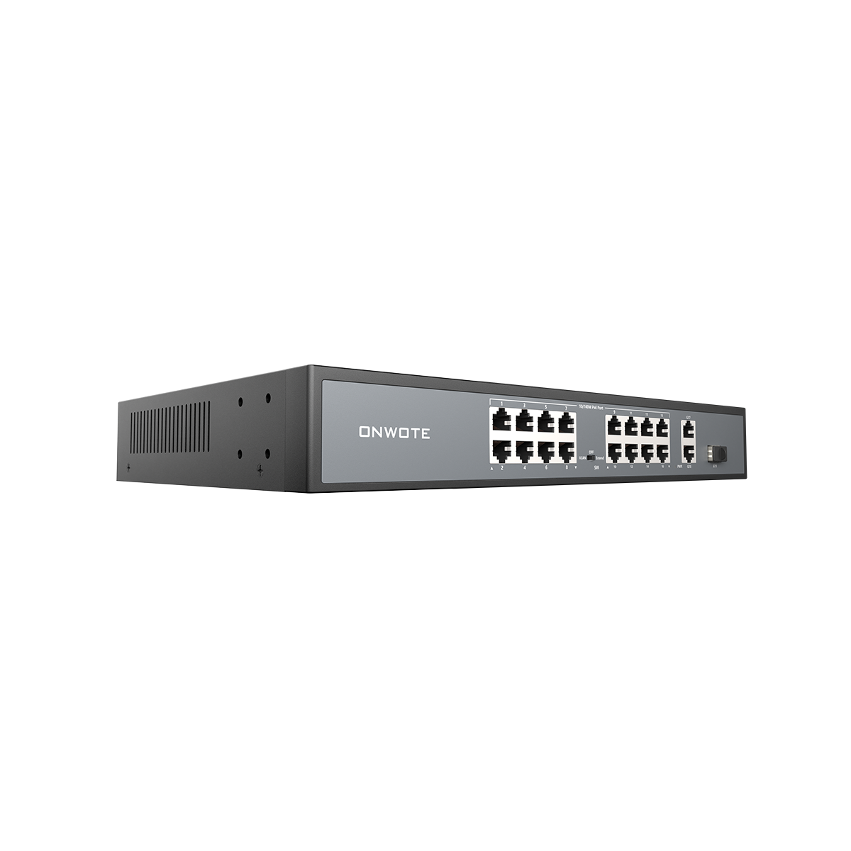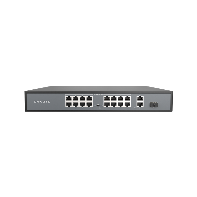 • 16x 10/100M-PoE Ports (Data/Power)
