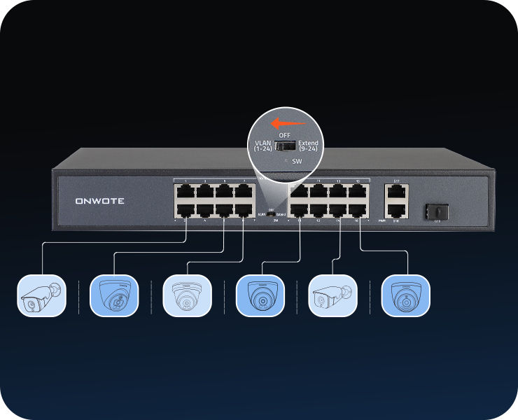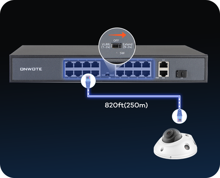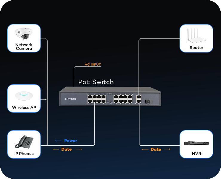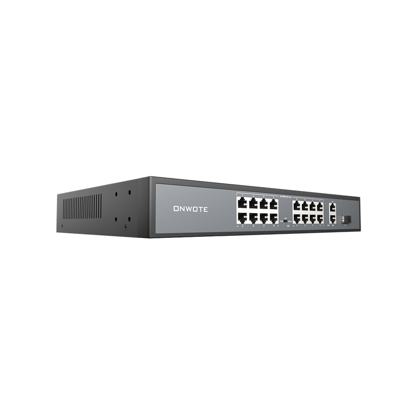 ONWOTE 16 Ports Ethernet PoE Switch @ 300W, 2 x Uplink Gigabit RJ45 Ports, 1 x SFP Slot, Support 4K 8MP 5MP PoE IP Security Cameras, Add-on PoE Injector to PoE NVR System