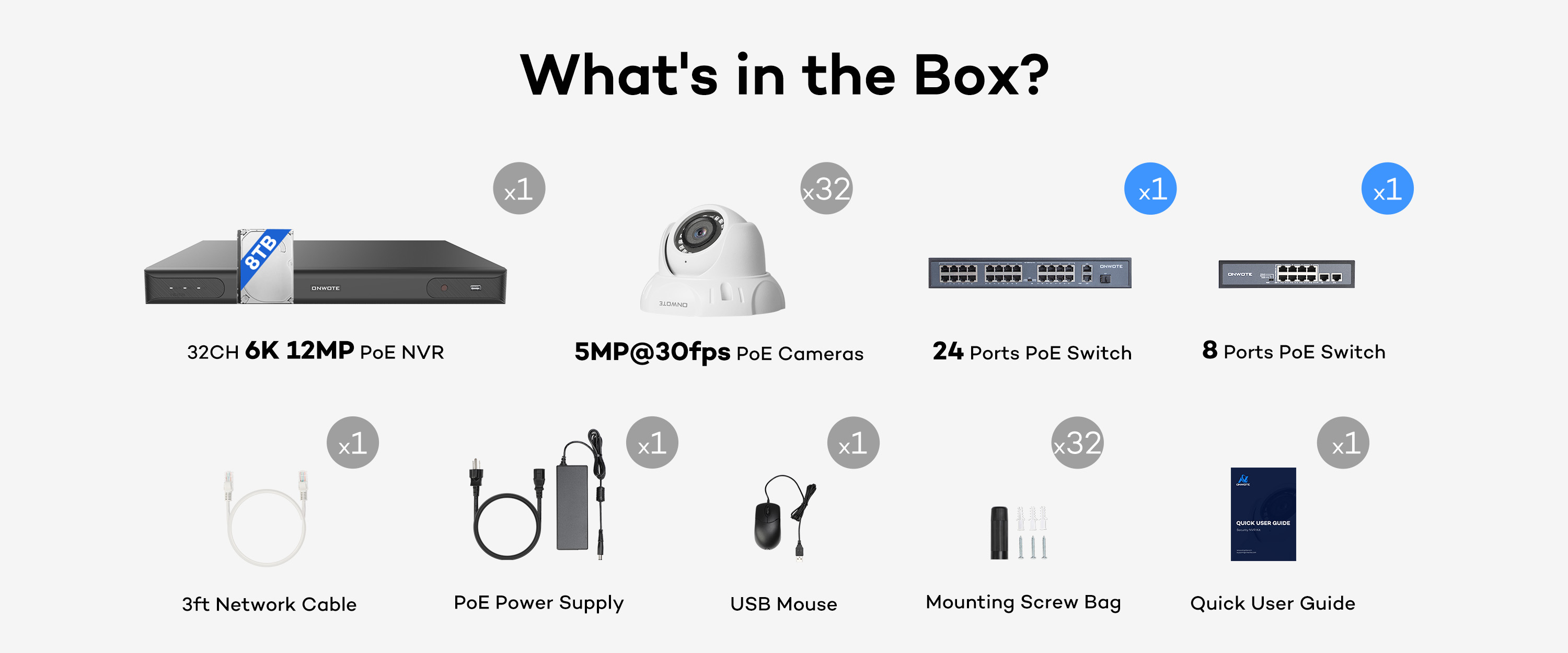 ONWOTE 32 Channel PoE Security Camera System, 32x 5MP POE IP Cameras, 32CH 12MP NVR 8TB, 4 HDD Ports Support 40TB, Commercial Grade CCTV for Business