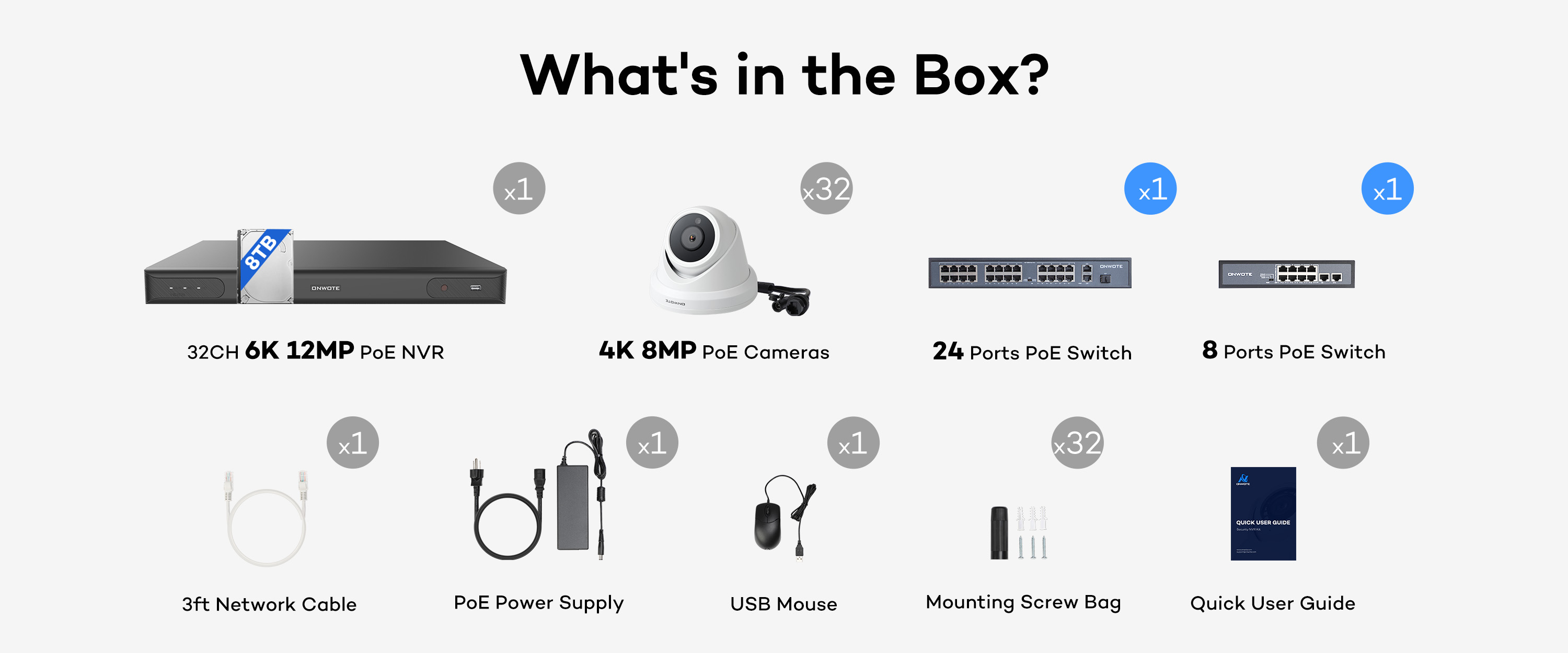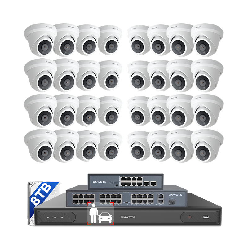 ONWOTE 32 Channel PoE Security Camera System, 32x 4K 8MP POE IP Cameras, 32CH 12MP NVR 8TB, 4 HDD Ports Support 40TB, Commercial Grade CCTV for Business