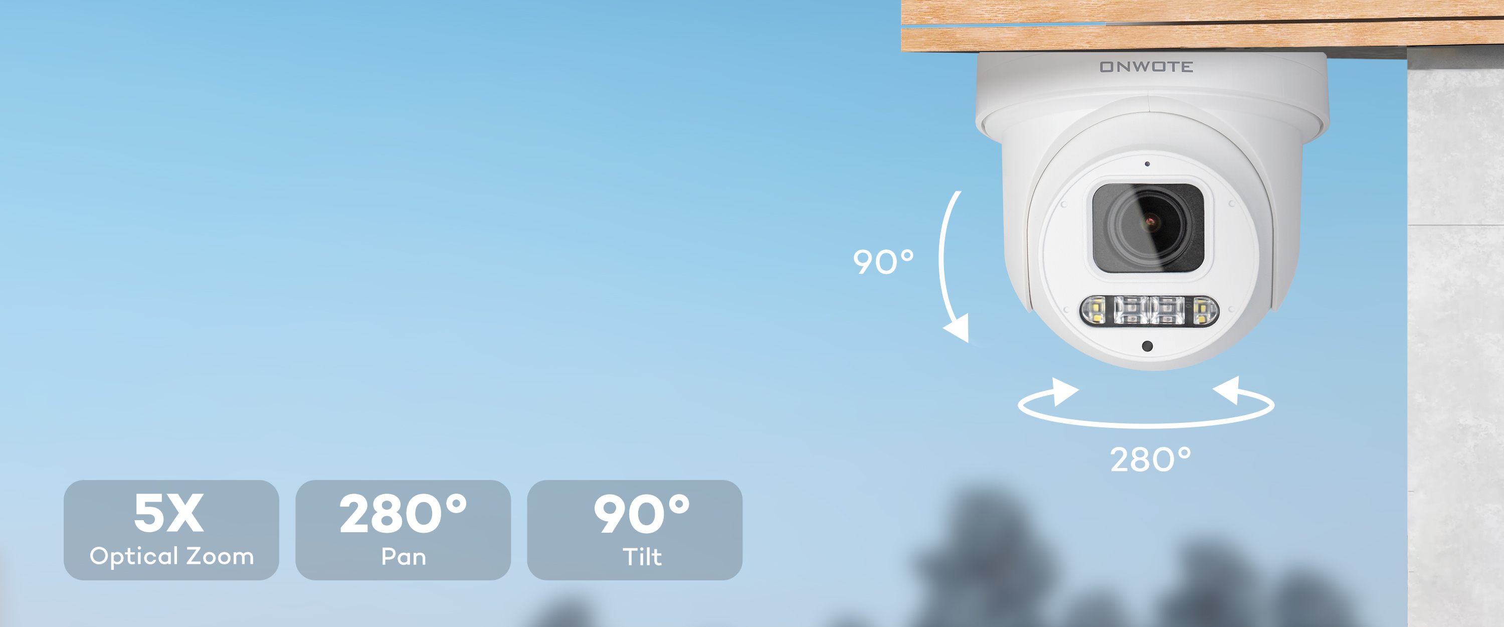 ONWOTE 4K 8MP PTZ PoE IP Security Camera 2 Way Talk, 280° Pan 90° Tilt 5X Optical Zoom, 2.7-13.5mm Motorized Lens, AI Detection Trigger Color Night Vision, Outdoor Commercial Wired Camera for Business