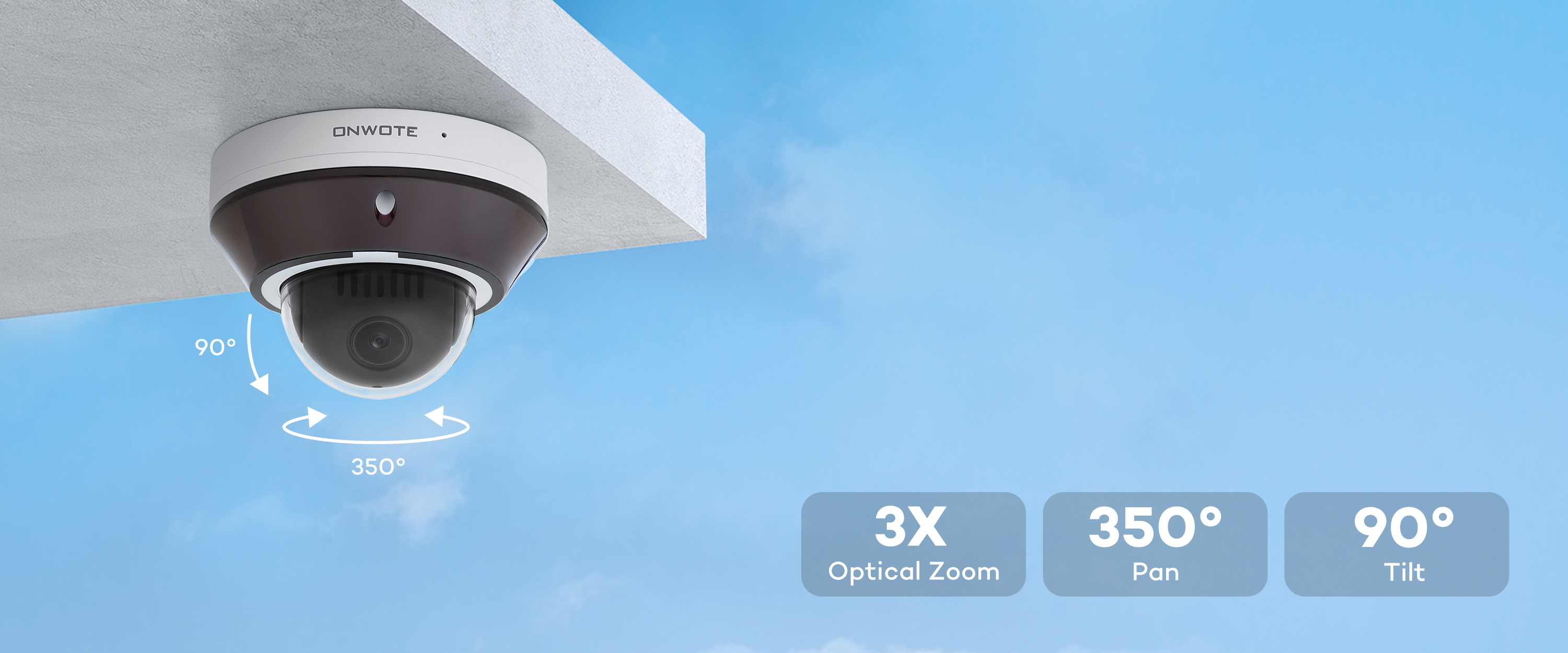 • Pan Tilt Zoom-- 3X optical zoom, 350° pan 90° tilt