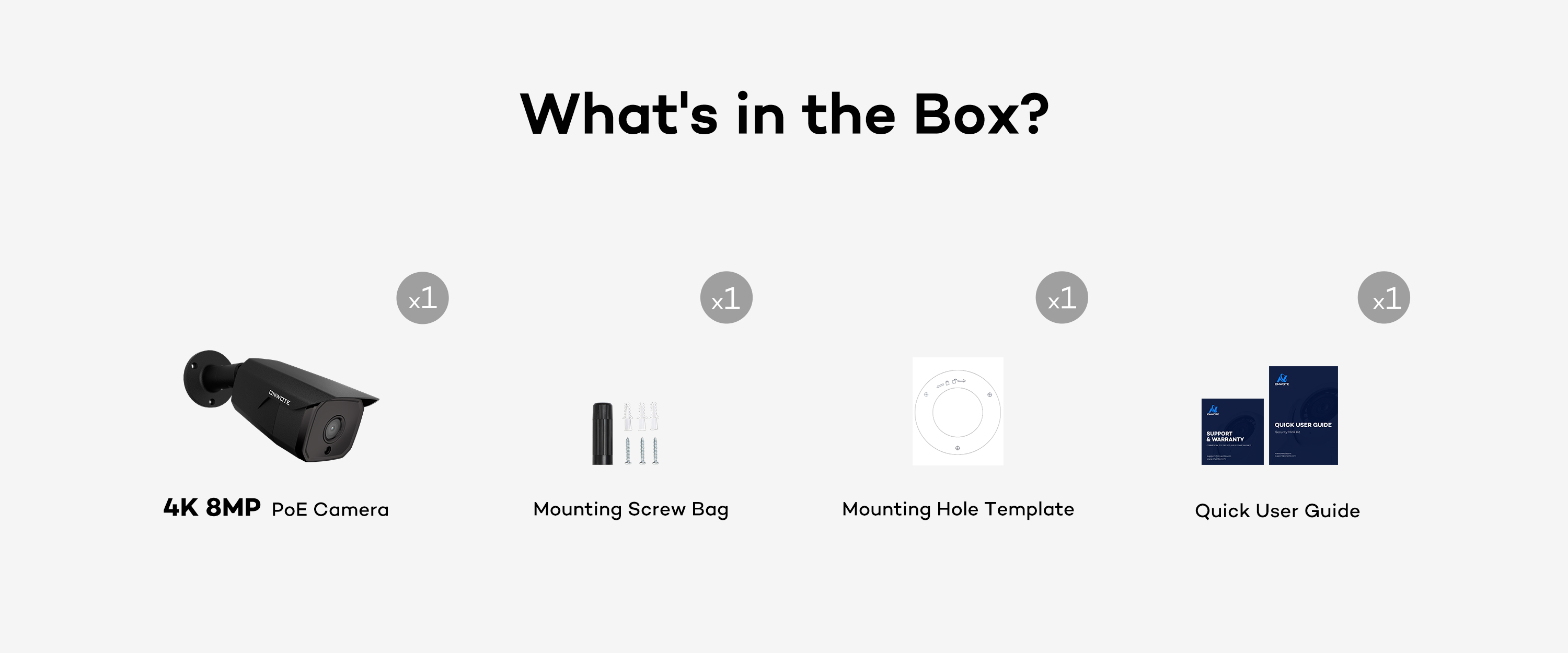 Work with ONWOTE 12MP/ 8MP PoE NVR or PoE switch with 48V-54V power supply