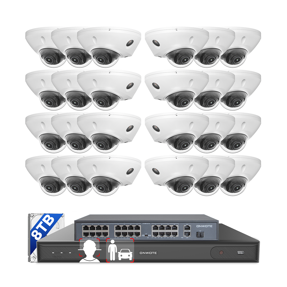 ONWOTE 32 Channel PoE Security Camera System, 24x 5MP POE IP Cameras, 32CH 12MP NVR 8TB, 4 HDD Ports Support 40TB, Commercial Grade CCTV for Business