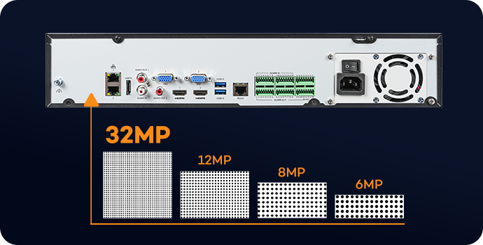 Support 64-CH IP Cameras Input-- compatible with ONWOTE 32MP/12MP/8MP/6MP/5MP PoE IP cameras.