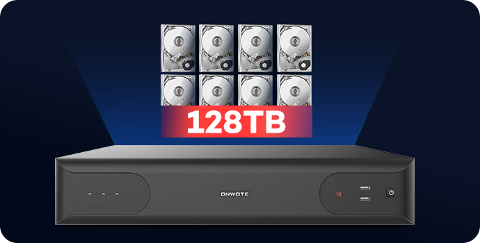 Storage Capacity-- 8 SATA HDD ports, supporting up to 128TB of storage for recording. (No HDD included.) supports RAID 0, 1, 5, 6, 10 storage schemes to avoid data loss risks.