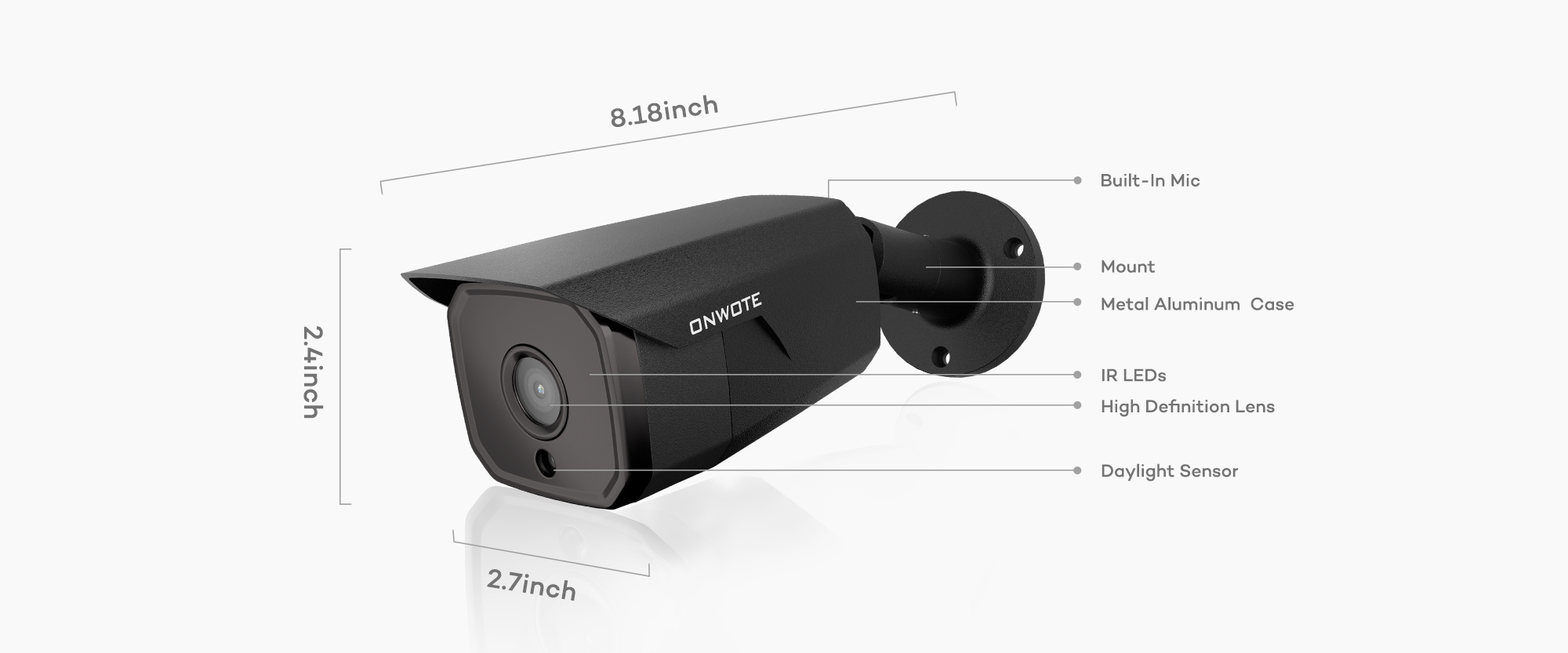 Work with ONWOTE 12MP/ 8MP PoE NVR or PoE switch with 48V-54V power supply