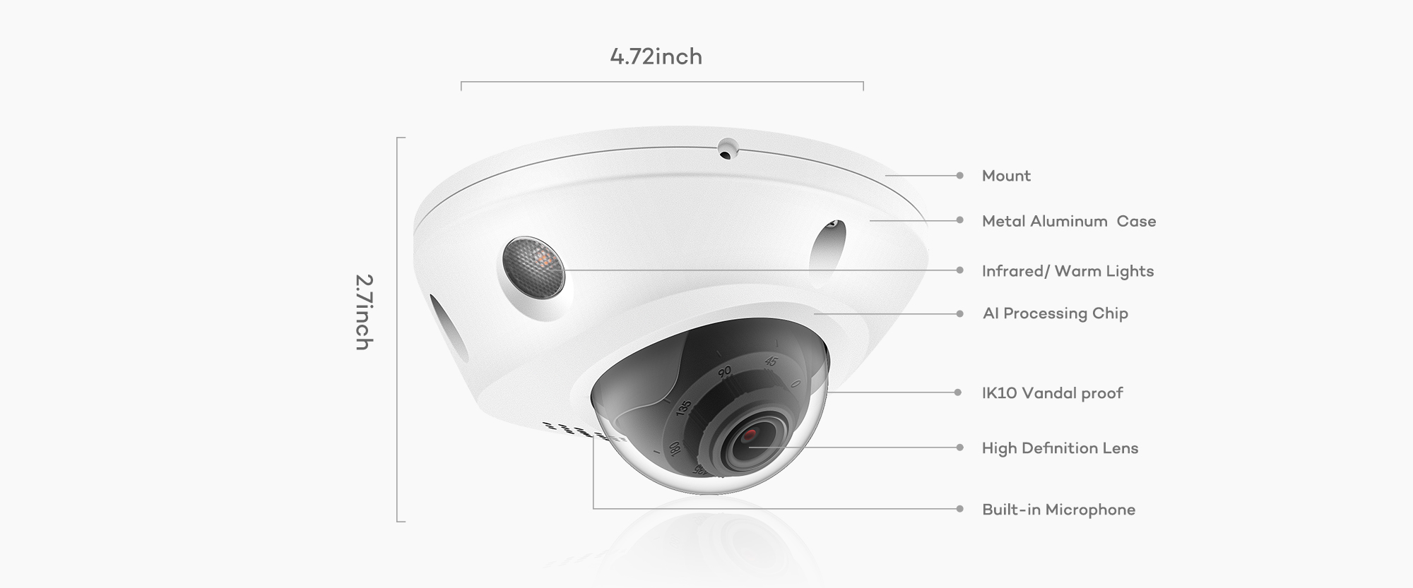 • 4K 8MP Superior Definition, 134° diagonal field of view. Capture and record audio