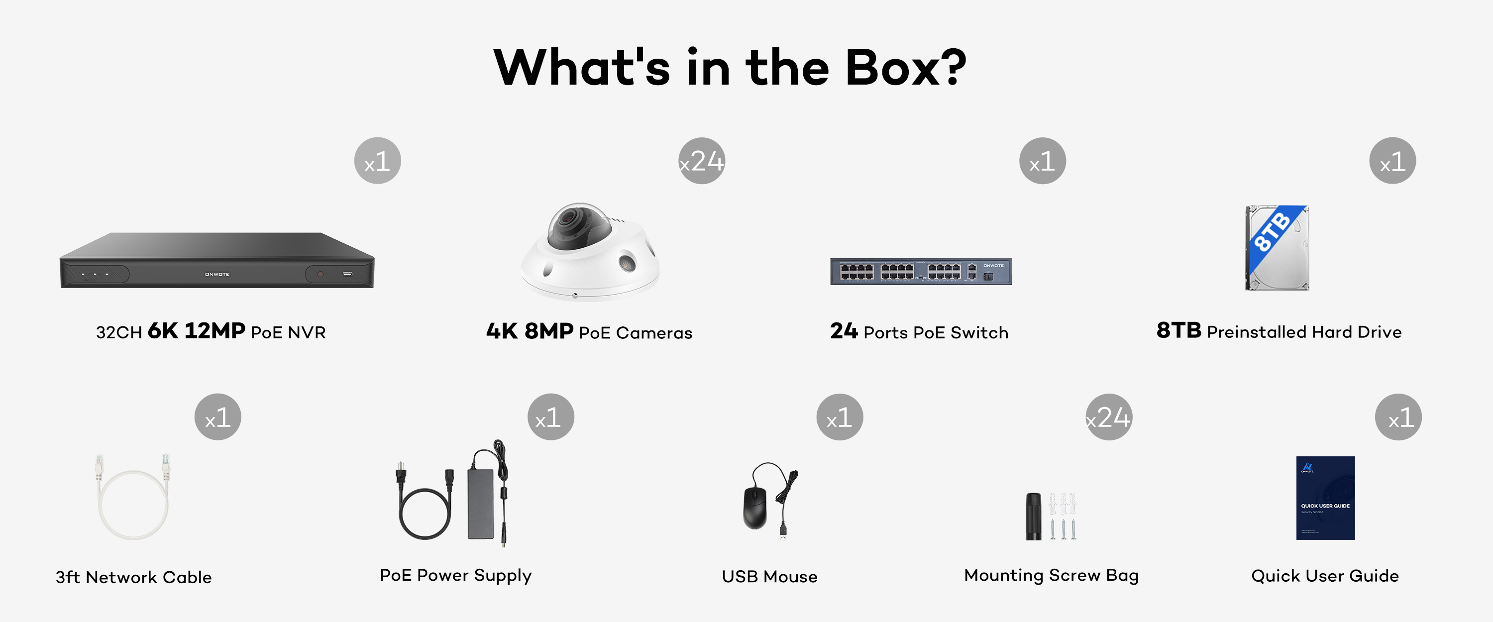 • 32CH 6K 12MP NVR-- Supports up to 32 cameras with resolutions up to 12MP