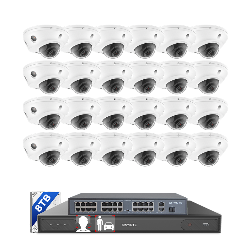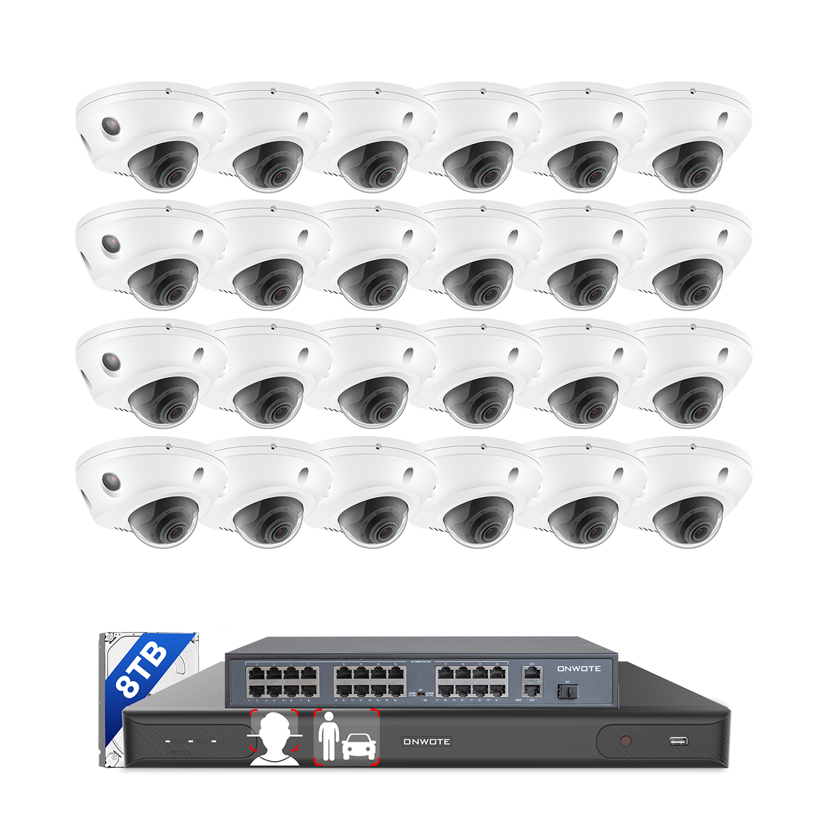 ONWOTE 32 Channel PoE Security Camera System, Face Recognition & AcuSearch, 2 Way Audio, 24x 8MP PoE IP Cameras, AI Color Night, 32CH 12MP NVR 8TB, 4 HDD Ports Support 40TB, Commercial Grade CCTV for Business