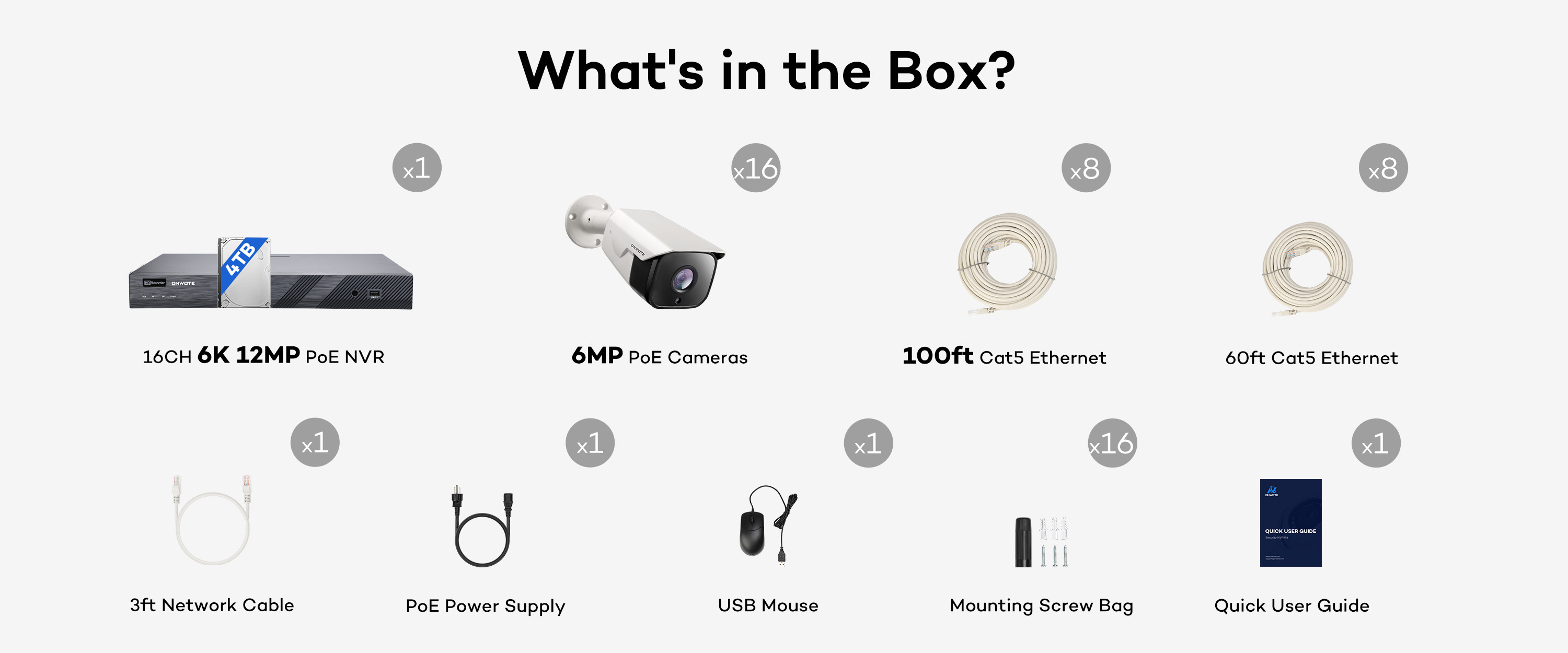 PoE technology allows a single Cat5 Ethernet cable to transmit video, audio, and power—making installation simpler than traditional DVR systems. Just plug and play.