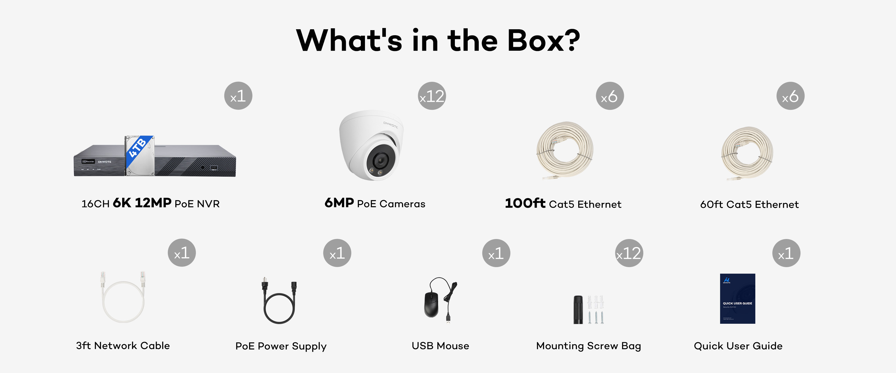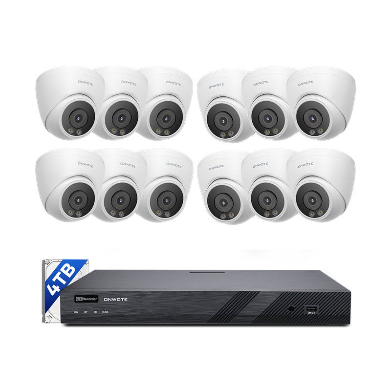 ONWOTE 16 Channel PoE Security Camera System, 12x 6MP POE IP Cameras, 16CH 12MP NVR 4TB, 2 HDD Ports Support 20TB, Commercial Grade CCTV for Business
