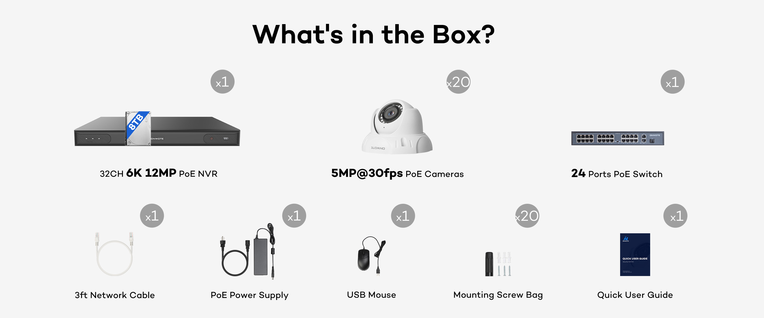 ONWOTE 32 Channel PoE Security Camera System, 20x 5MP POE IP Cameras, 32CH 12MP NVR 8TB, 4 HDD Ports Support 40TB, Commercial Grade CCTV for Business