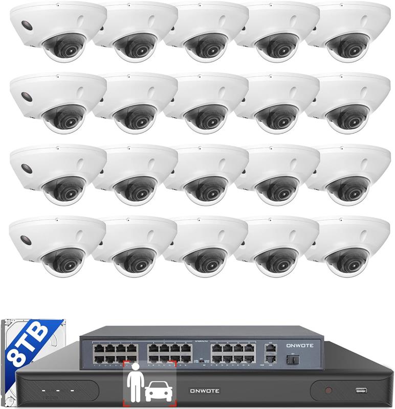 ONWOTE NVR 32 Channel Security Camera System 12MP, 20x 5MP 30FPS Vandal Proof PoE IP Cameras, Smart Color Night Vision, 32CH 6K 4K Commercial NVR 8TB, 4 HDD Ports Support 40TB, CCTV for Business