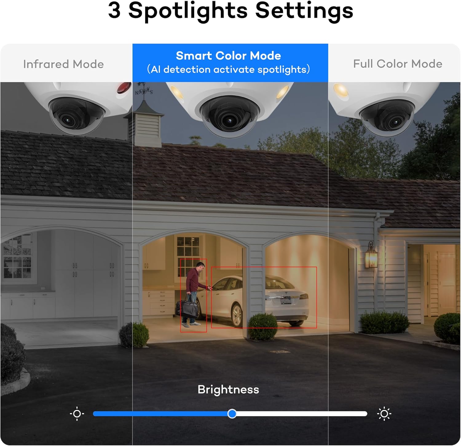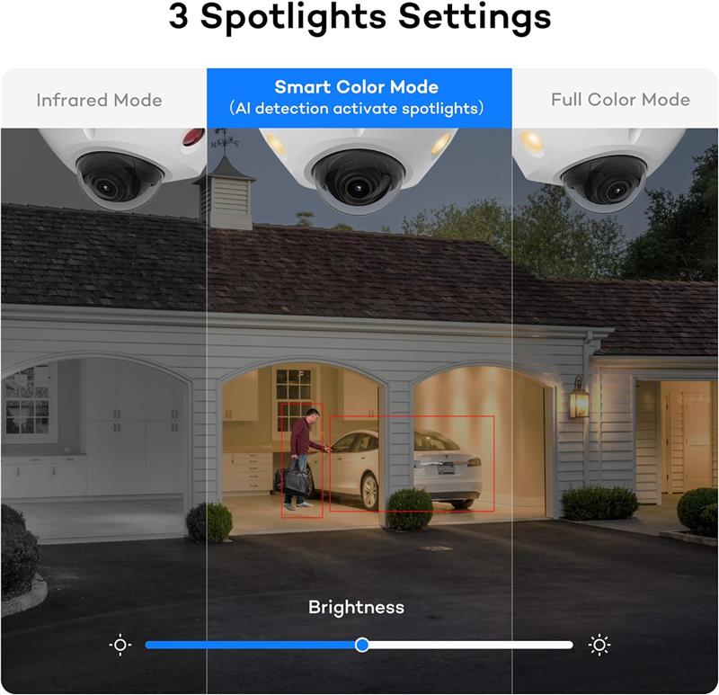 Smart Color Night Vision-- AI-powered human and vehicle detection activates warm lights to deliver color night vision for clearer, more detailed nighttime footage.