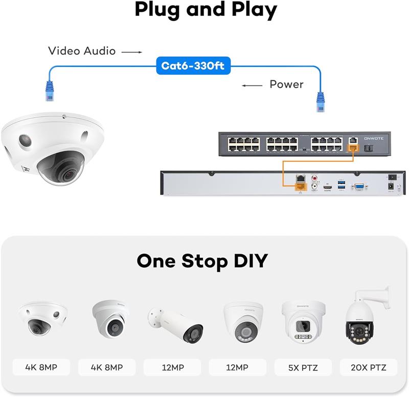 32CH 6K 12MP NVR-- Supports up to 32 cameras with resolutions up to 12MP, offering flexibility and scalability for your security needs. Additional add-on options available from ONWOTE.