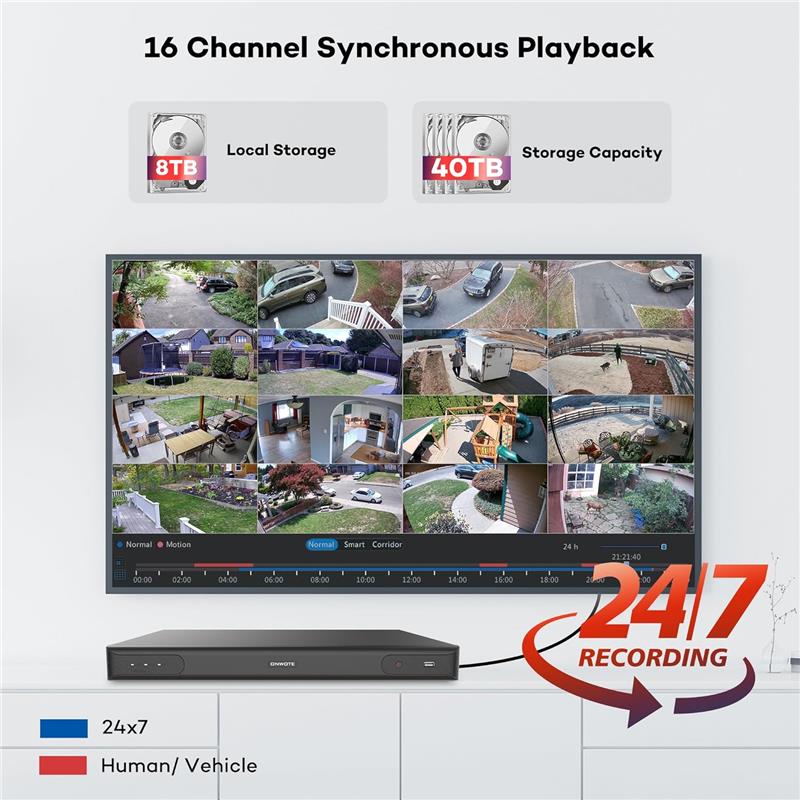 Smart Recording & Playback-- Quickly locate footage using the person/vehicle event filter and enjoy simultaneous playback from up to 16 cameras.