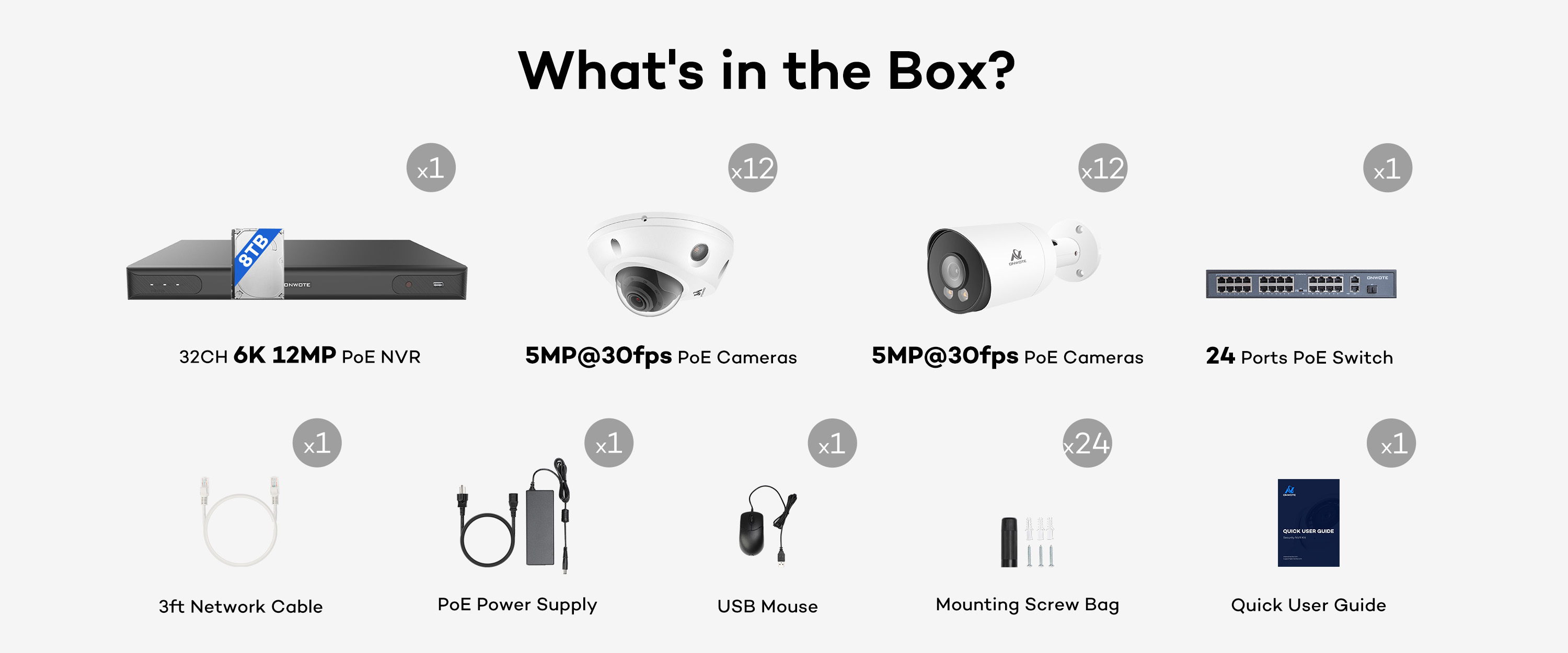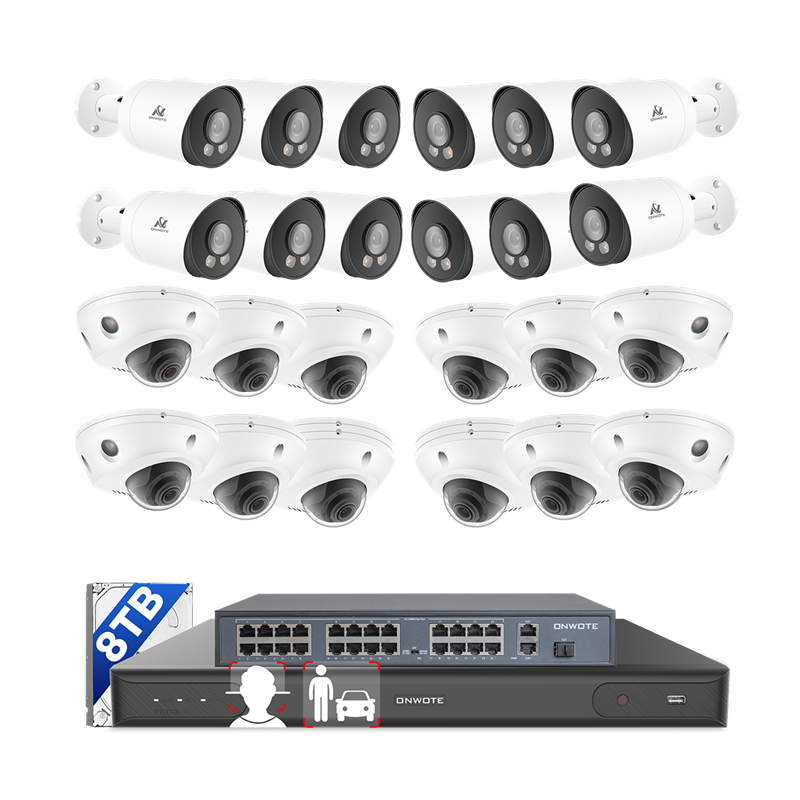 ONWOTE 32 Channel PoE Security Camera System, 24x 5MP POE IP Cameras, 32CH 12MP NVR 8TB, 2 HDD Ports Support 20TB, Commercial Grade CCTV for Business
