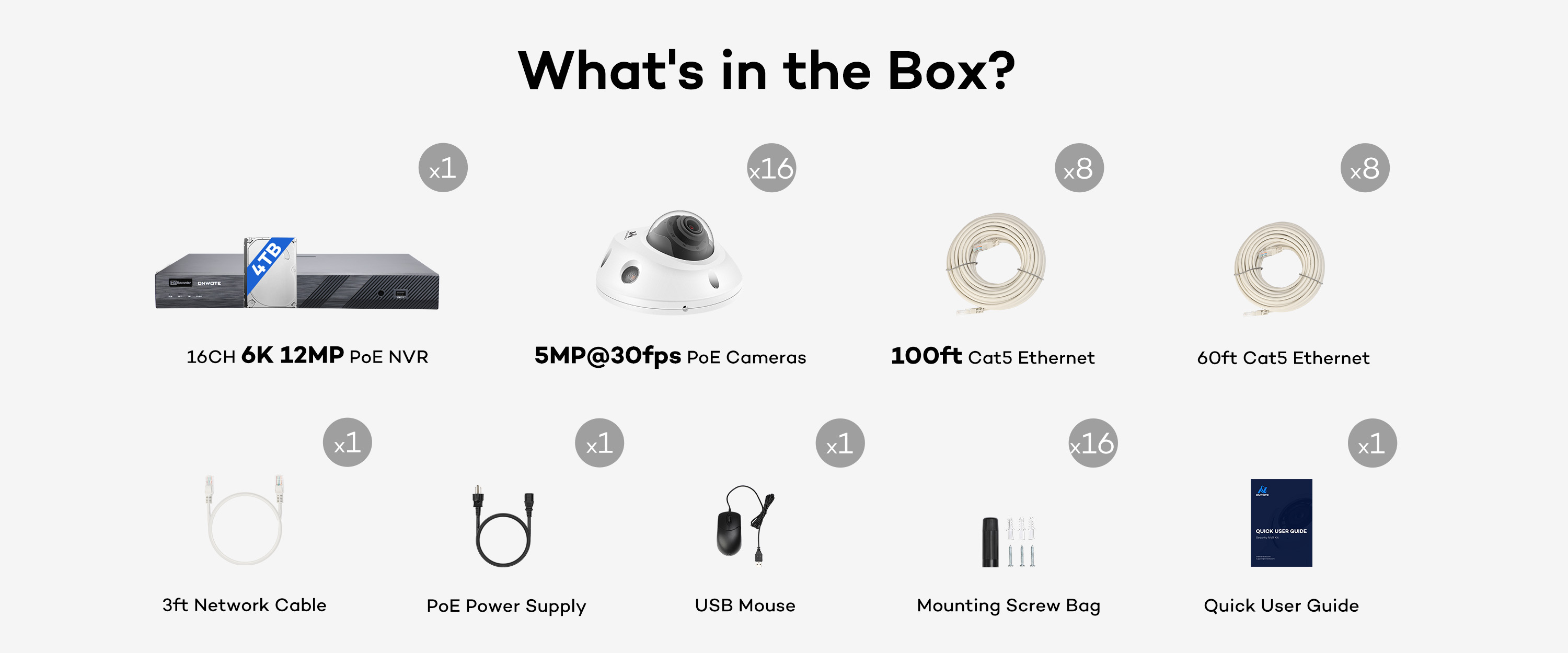 PoE technology allows a single Cat5 Ethernet cable to transmit video, audio, and power—making installation simpler than traditional DVR systems. Just plug and play.