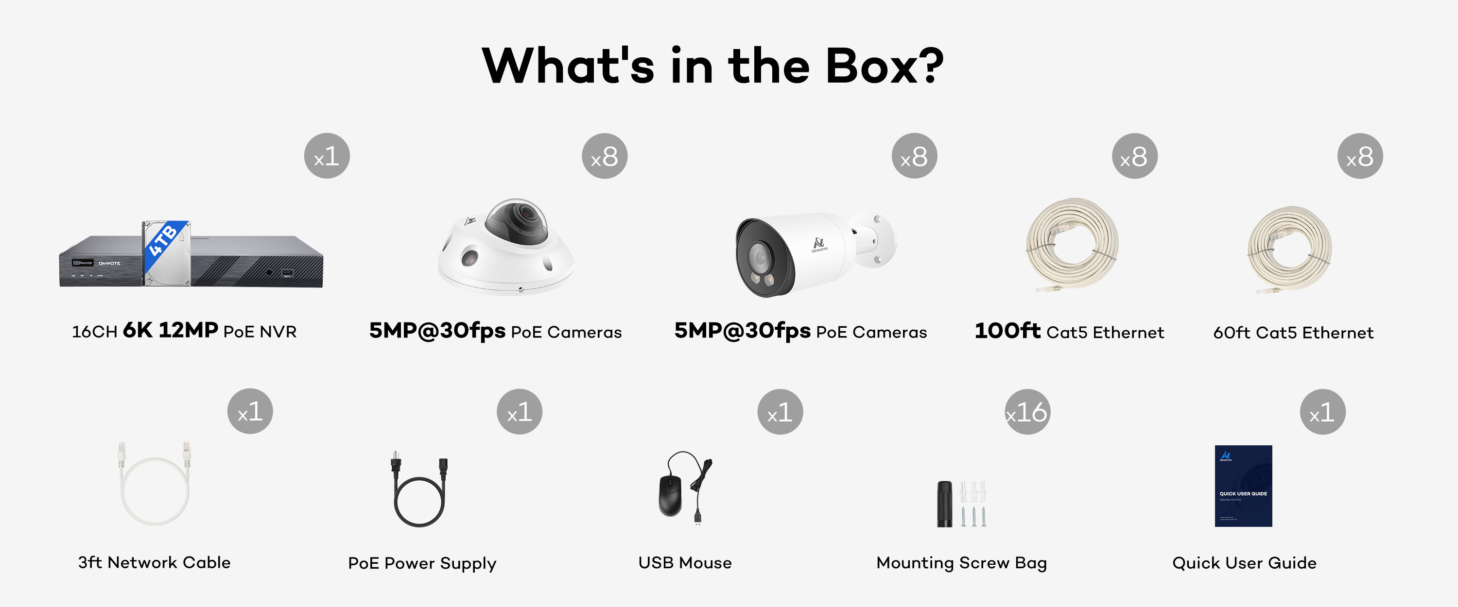 PoE technology allows a single Cat5 Ethernet cable to transmit video, audio, and power—making installation simpler than traditional DVR systems. Just plug and play.