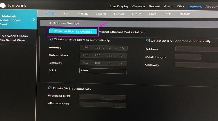 2. Change the cameras IP to the same segment with the NVR’s LAN port.