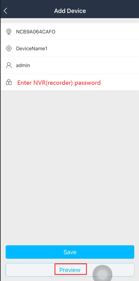 - Enter the password of your NVR and click Preview. (The password is the one you use to login your system on the monitor, default password is 123456.)