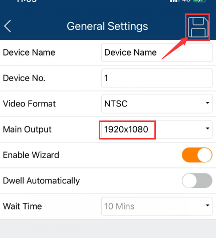 How to change NVR output resolution on App
