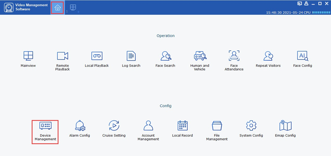 Main View on top, double click on Root, right click on your device and choose Open all ch to view video.
