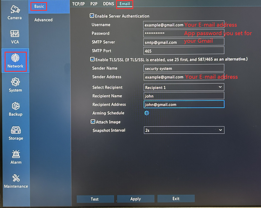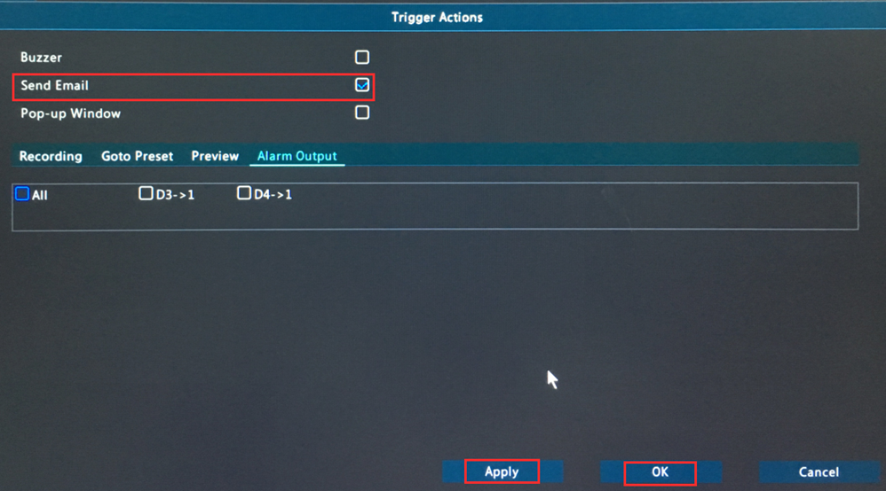 Tips: You just enabled Send Email for the selected camera, please select other cameras and do the same steps to enable Send Email for them.