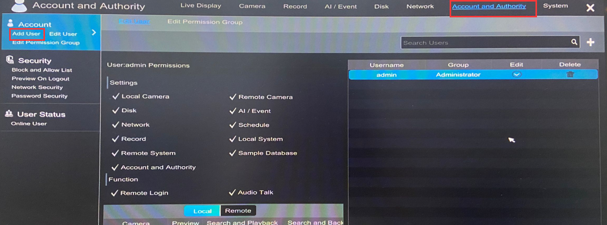 How to add a new user on NVR