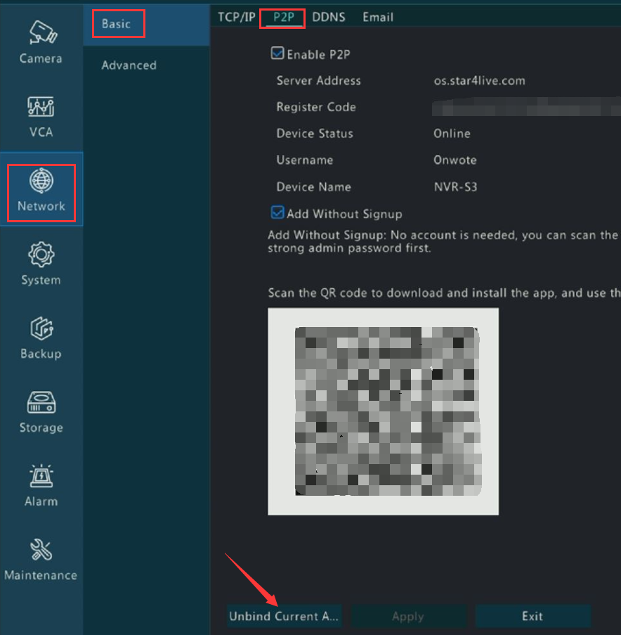 Go to NVR Menu--Network--Basic--P2P, click Unbind current account or Delete on the botton of the page to unbind the old account. Then add device on your phone again.
