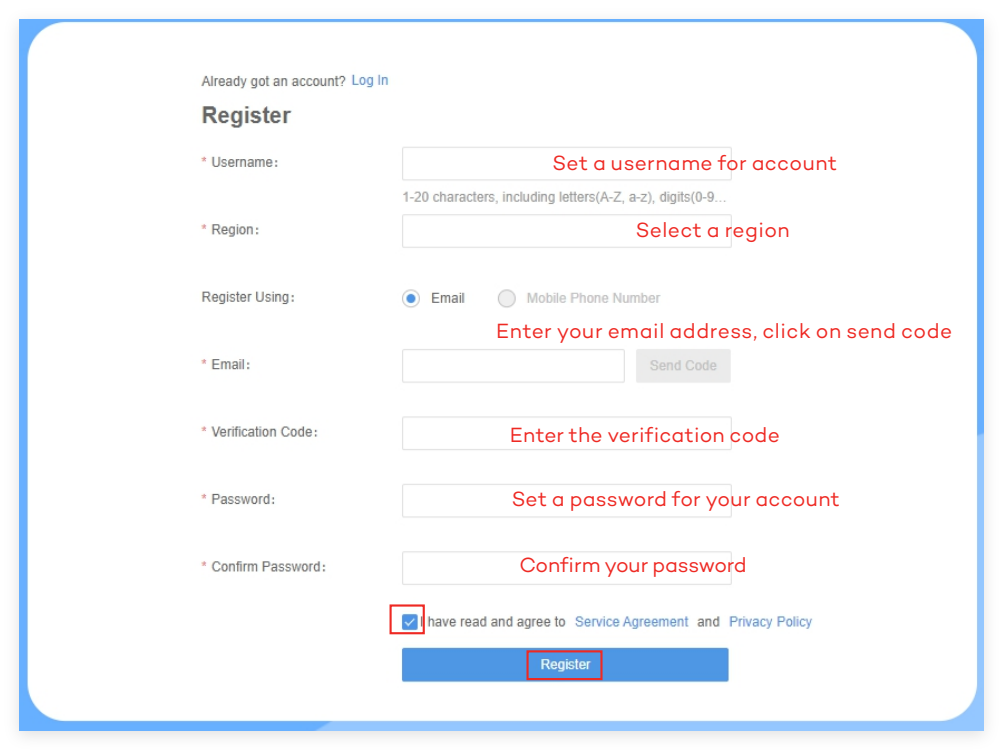 set a password,click Register to sign up an account.