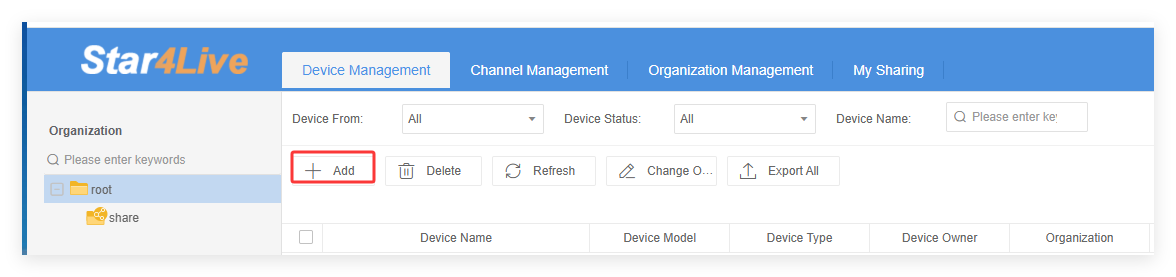 e. Click +Add to add device.