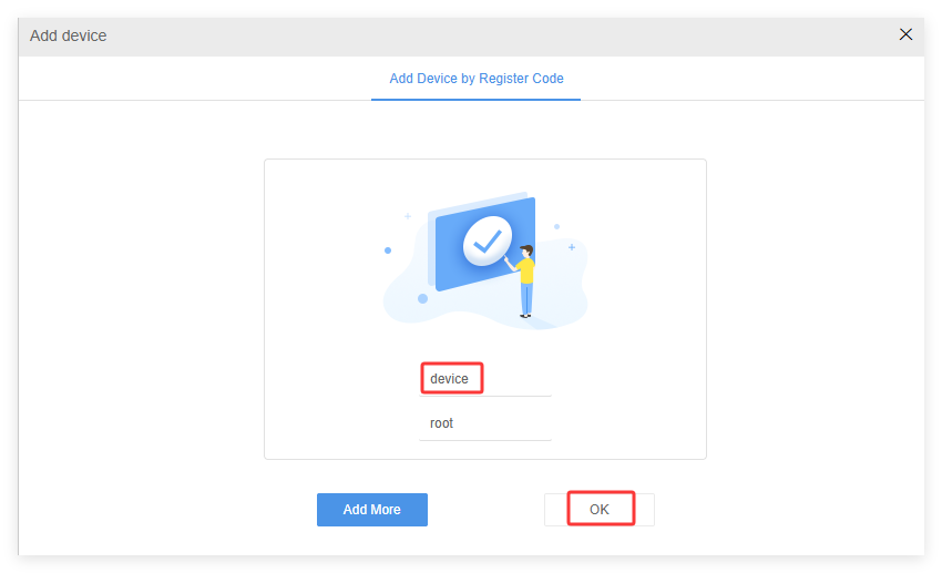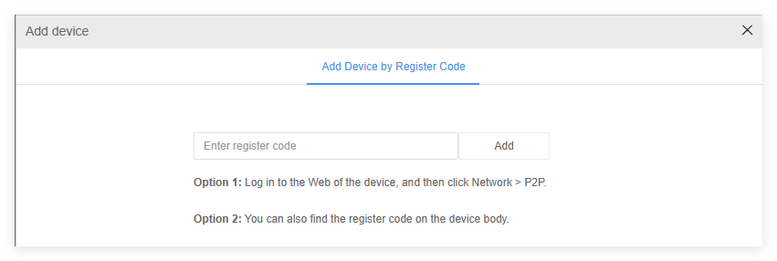 f. Input the Register Code and click on Add. Then set a name for your device and click on OK.