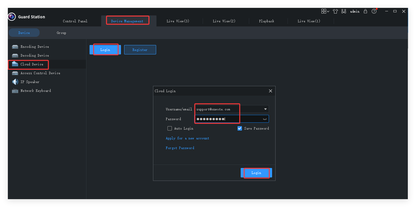 g. Go back to your PC client software- Guard Station, login with the account you registered.