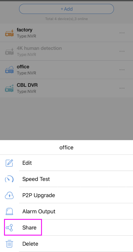 1. Please open Guard Viewer, tap on the button on tope left and choose Devices.