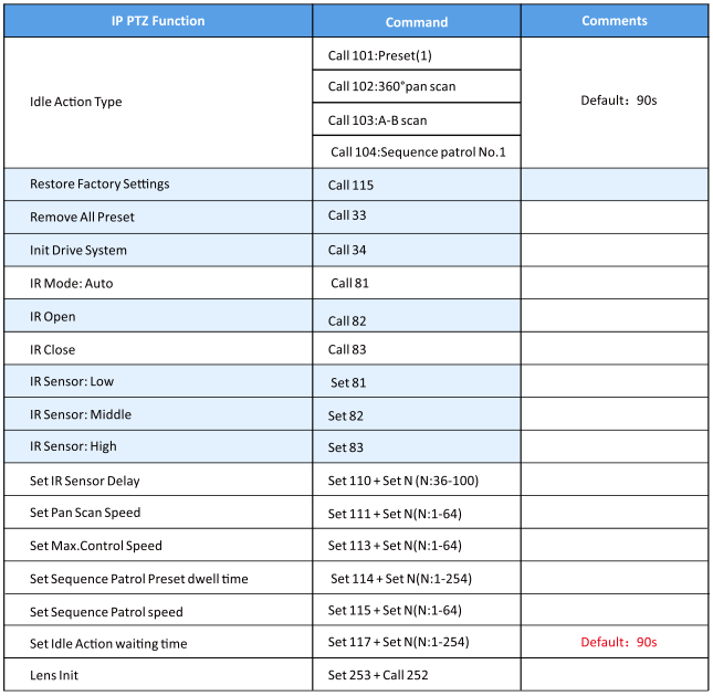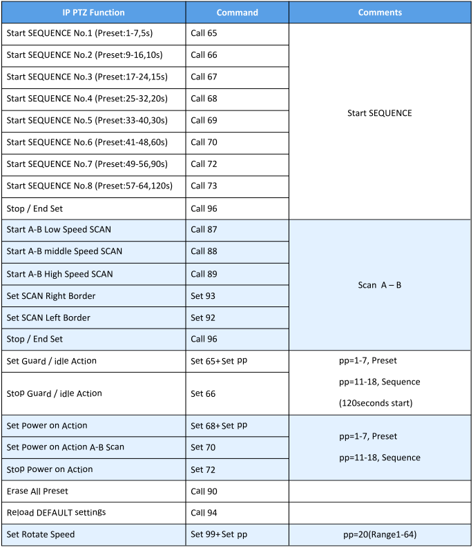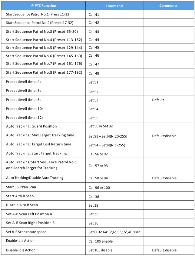 Command List for 20x Zoom PTZ Cameras